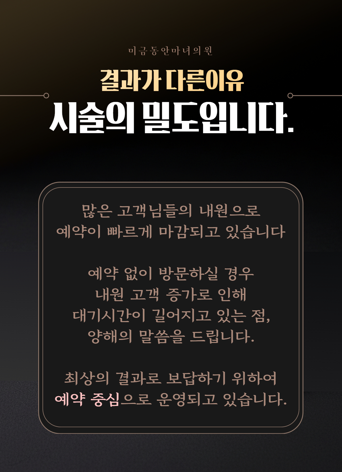 작은 고민도 진심으로 듣고, 과하지 않은 시술로 편안한 변화를 주는 곳. 피부뿐만 아니라 마음까지 가벼워지는 경험, 지금 동안마녀의원에서 시작해보세요.