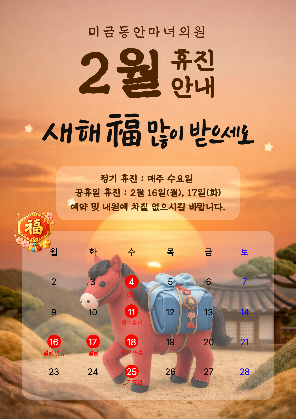 예약 및 내원에 차질 없으시길 바랍니다.❤️
